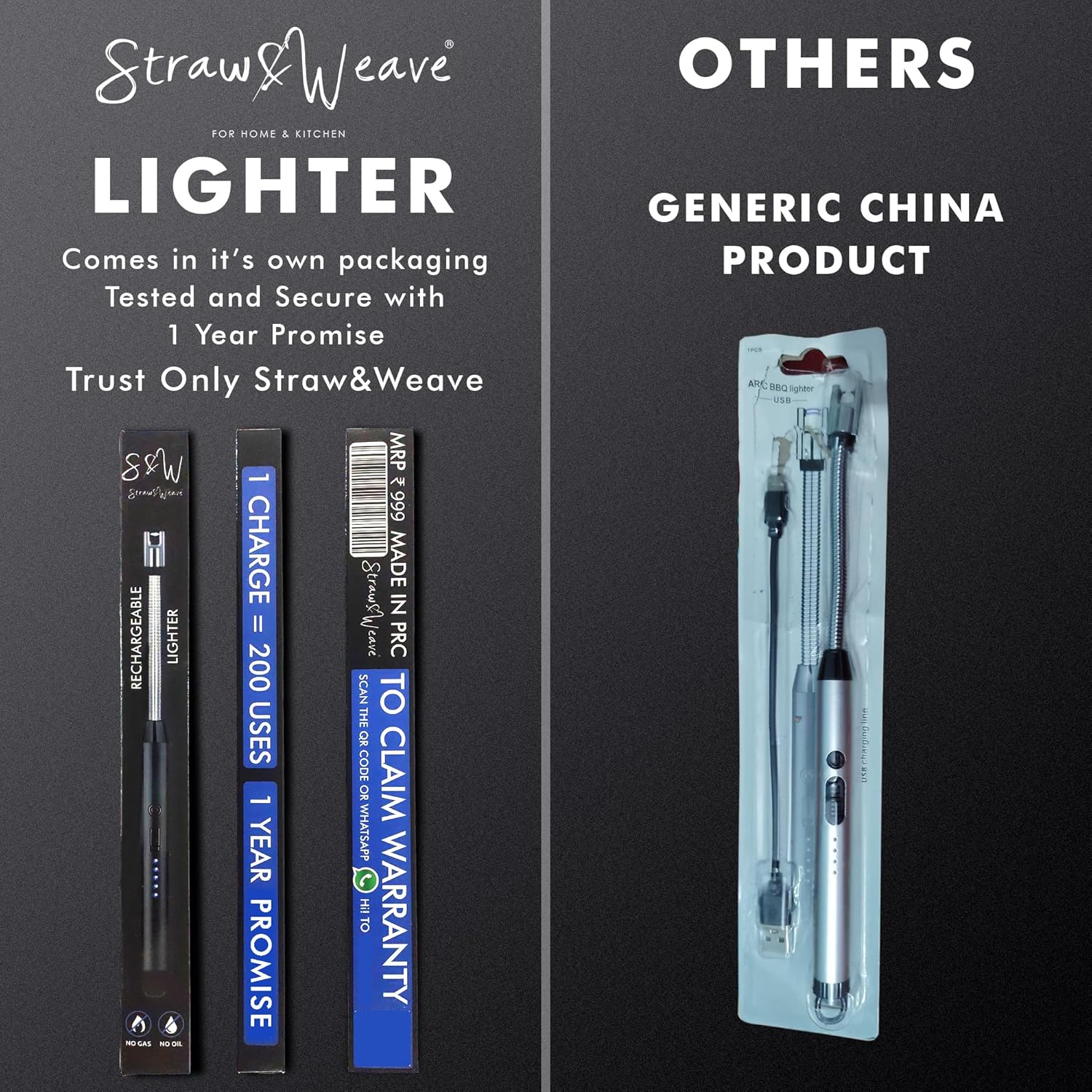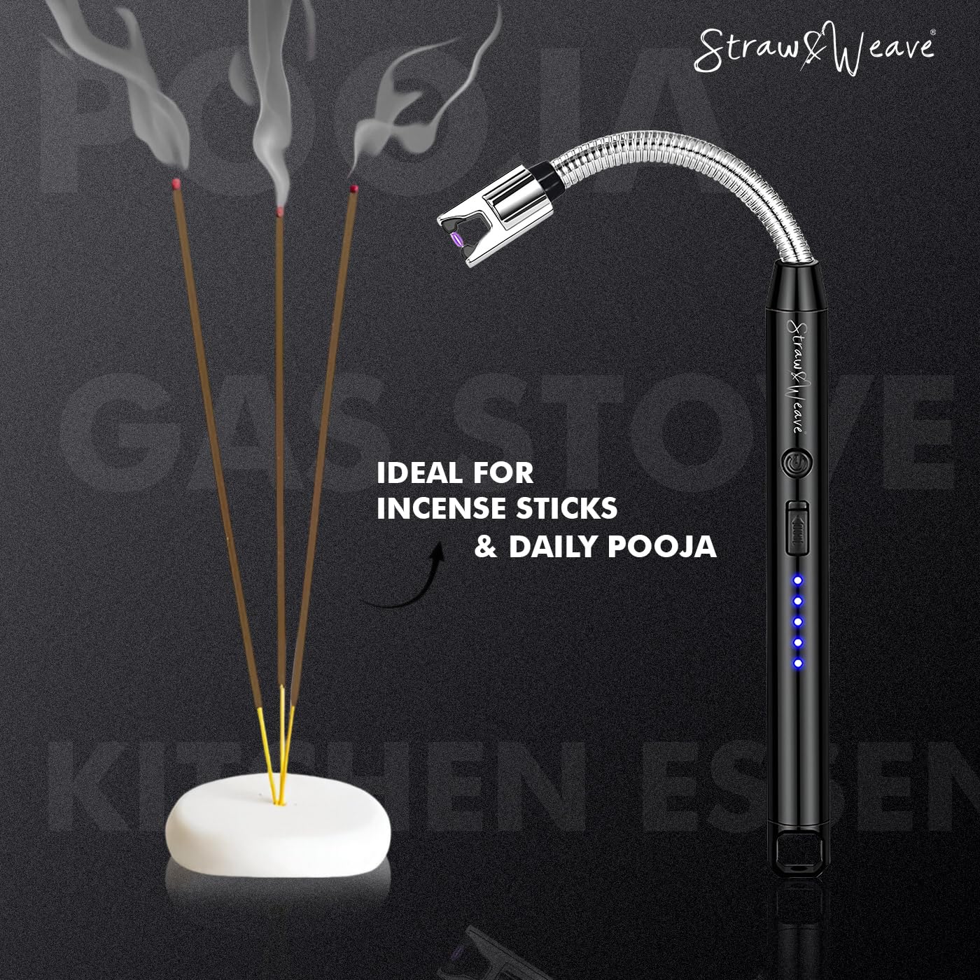 Experience effortless and safe ignition with the Straw & Weave Rechargeable Electric Lighter – a modern, flameless solution for your kitchen and home.